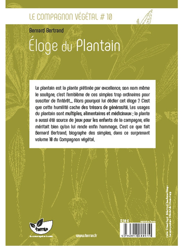 'A voir le nombre d'insectes qui ont adopté le Plantain, et le goût que lui portent les oiseaux, je verrais en lui le symbole d'un havre biologique, tenace et opportuniste, comme ces coins délaissés de nos villes qui deviennent friches et îlots de vie. Et si c'était l'un des ingrédients clefs du jar