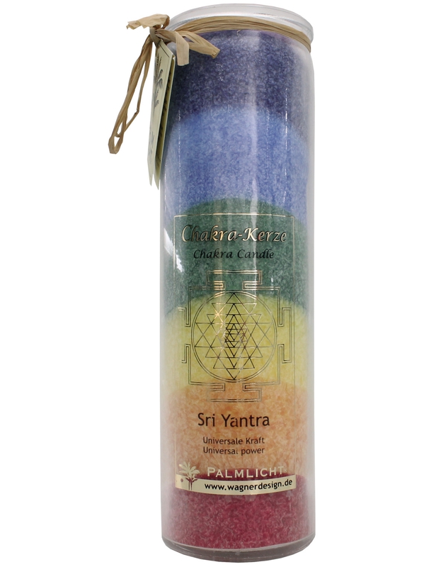 Cette bougie contient les seps couleurs des chakras principaux (le rouge, orange, jaune, vert, bleu, indigo et mauve) et ces couleurs sont brûlées successivement. Les sept chakras principaux se trouvent le long du corps, du bas de la colonne vertébrale jusqu'au sommet de la tête. Ils sont liés aux Voir plus