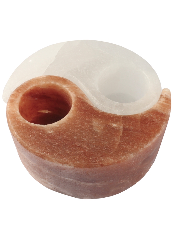 Bougeoir Yin Yang - Cristal de sel blanc et orangé