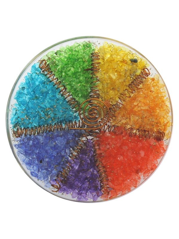 Sous verre Orgonite 7 Chakras avec symbole Méditation
