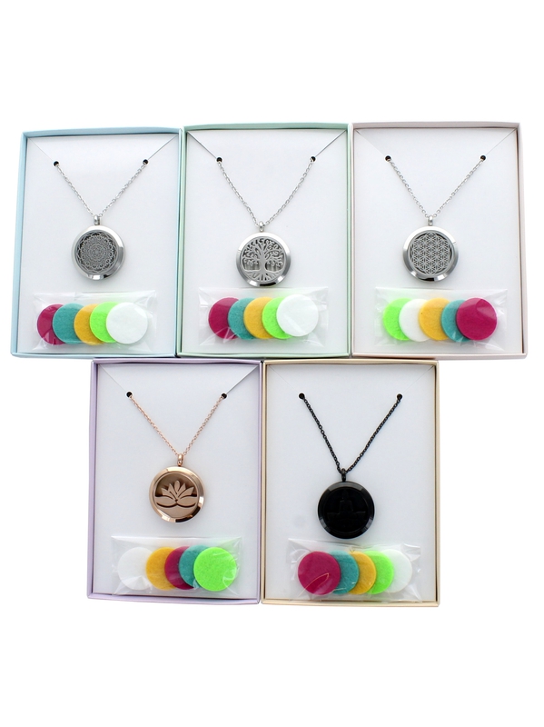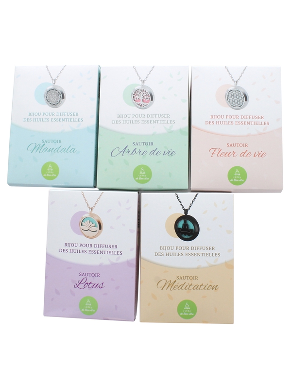 Bijou Diffuseur de Parfum ou d'Huile Essentielle Fleur de Vie. Diamètre du pendentif : 30mm - Pendentif en acier inoxydable - chaîne de 82 cm - 5 disques de tissus absorbants en suédine. Ce collier vous permet de profiter des bienfaits de l'aromathérapie toute la journée ! Signification du pendenti
