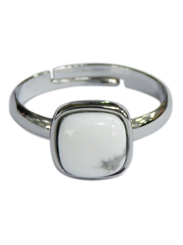 Bague fine et ajustable avec une pierre de Howlite Blanche en forme de carré à la finition argentée. La Howlite Blanche clarif