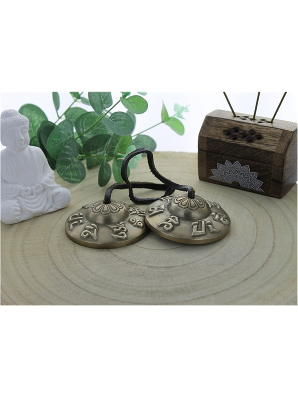 Cymbales tibétaines en bronze grand modèle avec gravure mantra Omsaé