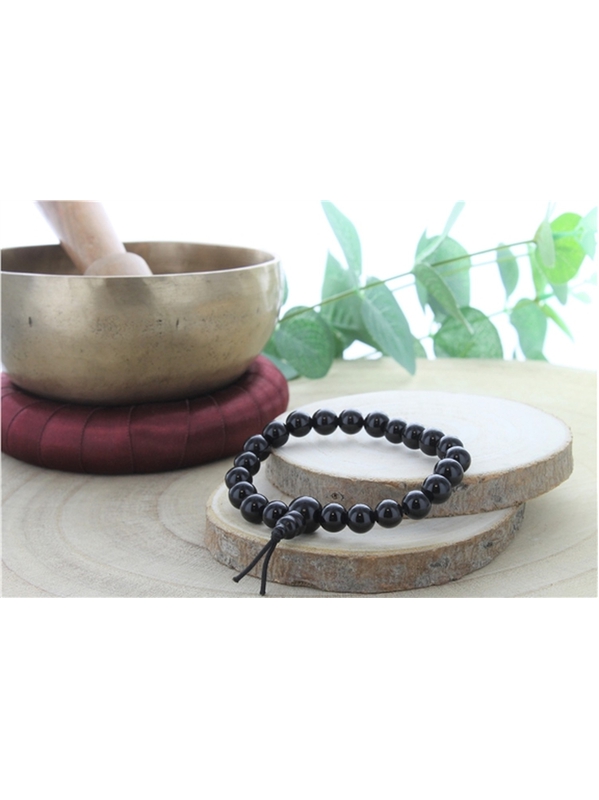 Bracelet élastique composé de perles en pierre d'obsidienne noire. L'obsidienne noire favorise le calme, la protection et la clairvoyance.