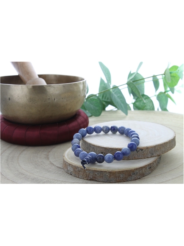 Bracelet élastique composé de perles en pierre de q3uartz bleu. Le quartz bleu favorise la purification, la paix intérieure et la communication.