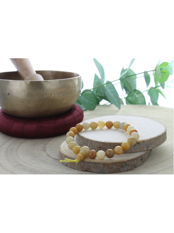Bracelet élastique composé de perles en pierre de jade jaune. Le jade jaune apporte joie de vivre, vitalité et optimisme.
