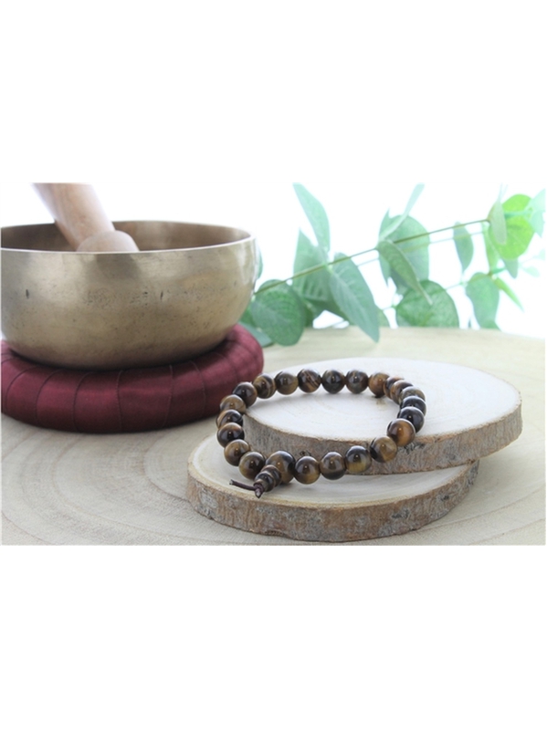 Bracelet élastique composé de perles en pierre d'oeil de tigre. L'oeil de tigre aide à la protection, les choix de vie et à éloigner le négatif.