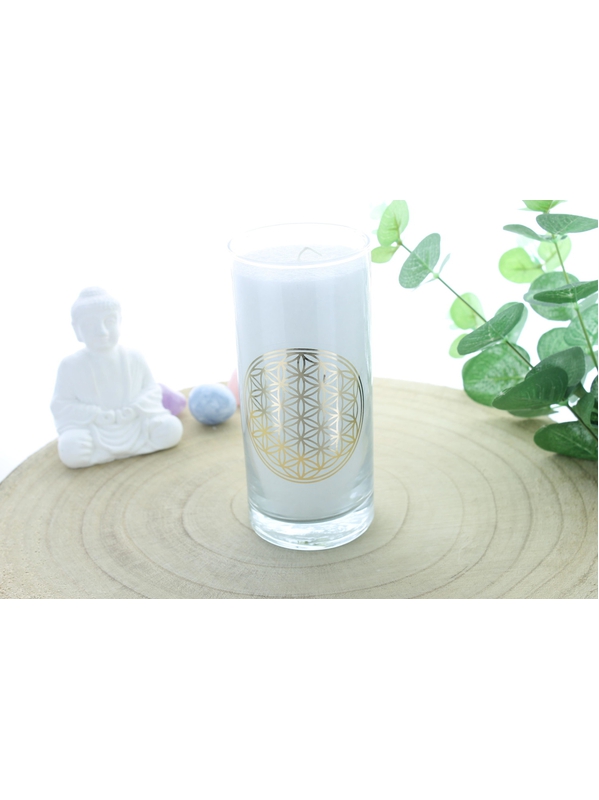 Bougie en Cire végétale Blanche Fleur de vie