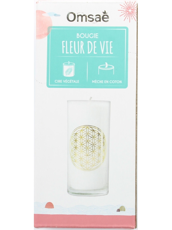 Bougie en cire végétale blanche au motif fleur de vie Omsaé