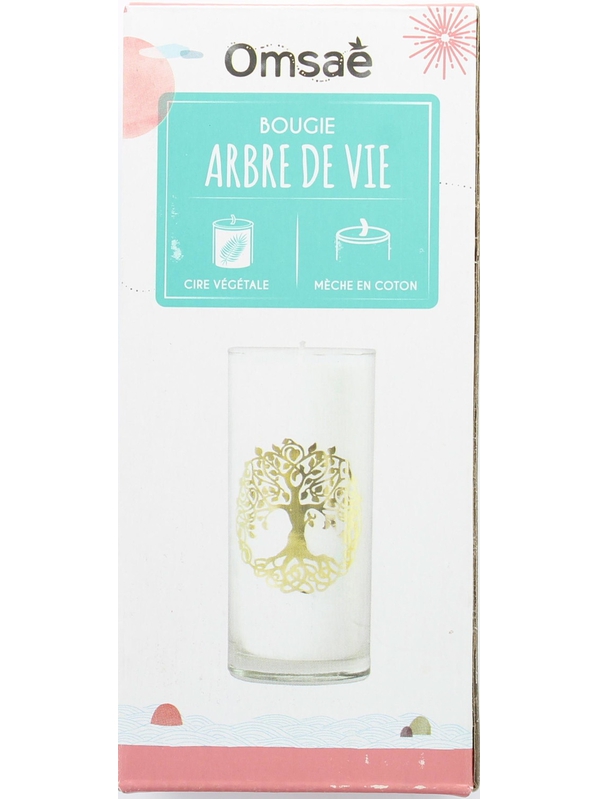 Bougie en cire végétale blanche au motif arbre de vie Omsaé