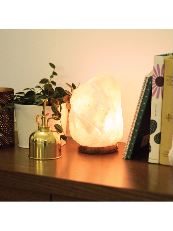 Lampe composée de cristal de sel originaire des montagnes de l'Himalaya dans lesquelles il s'est formé il y a près de 500 millions d'années. Pour garantir une qualité optimale, chaque bloc de sel 100% naturel est soigneusement sélectionné, extrait à la main, lavé et séché au soleil. En Feng Shui, la lampe en cristal de sel est un objet largement utilisé pour sa capacité à purifier l'atmosphère. Lorsqu'elle est allumée, elle émet des ions négatifs qui viennent capter les particules étrangères et absorber les énergies négatives. L'air ambiant est ainsi assaini et vivifié. Propice à la relaxation grâce à la douce lumière qu'elle diffuse, cette lampe saura séduire par sa forme brute et trouvera sa place dans tout intérieur.