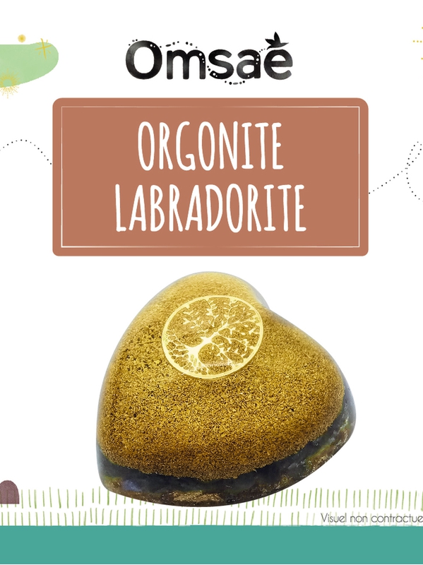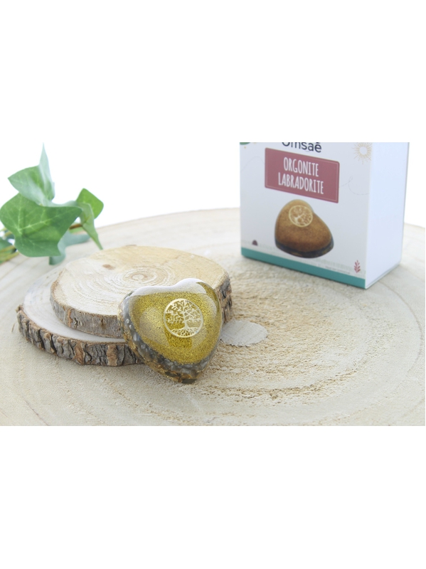 Cœur orgonite en labradorite avec symbole arbre de vie Omsaé