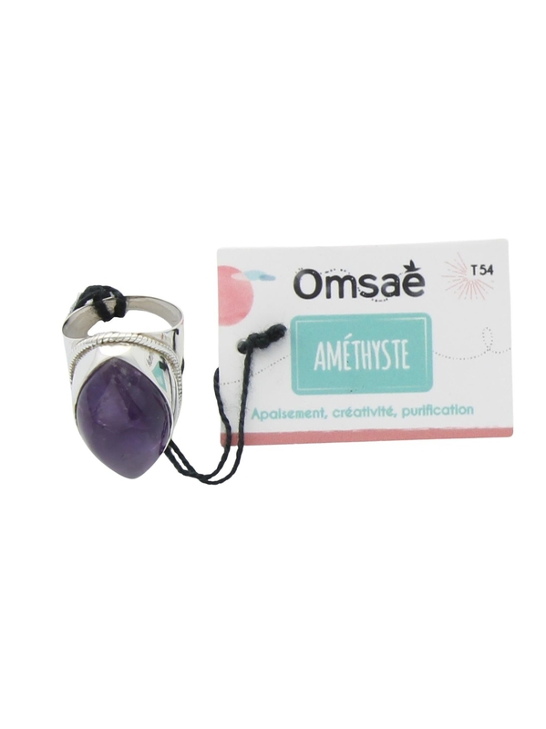 Bague en améthyste et argent modèle Méthystos de taille 54 Omsaé