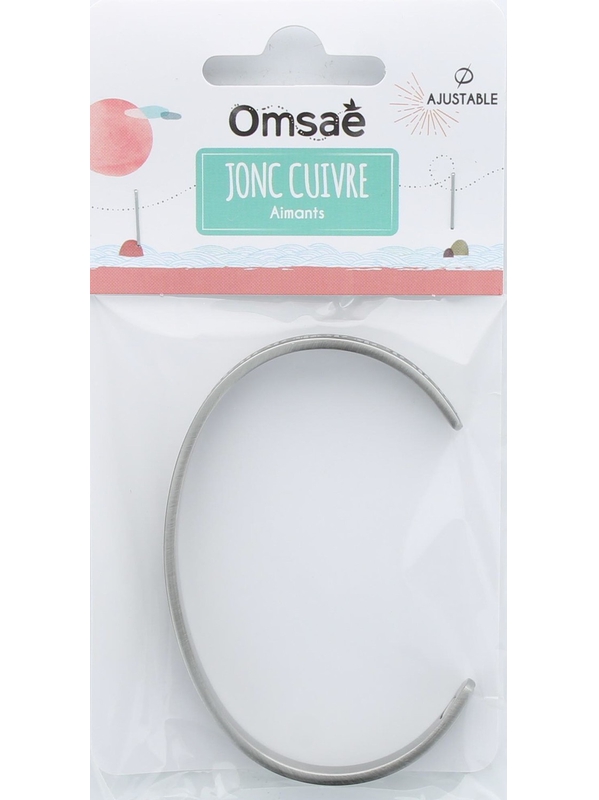 Bracelet en cuivre avec aimants, en forme de jonc plat finition argentée vieillie Omsaé