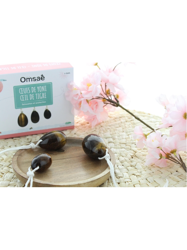 Coffret de 3 oeufs de Yoni Omsaé en œil de tigre, relaxation et protection