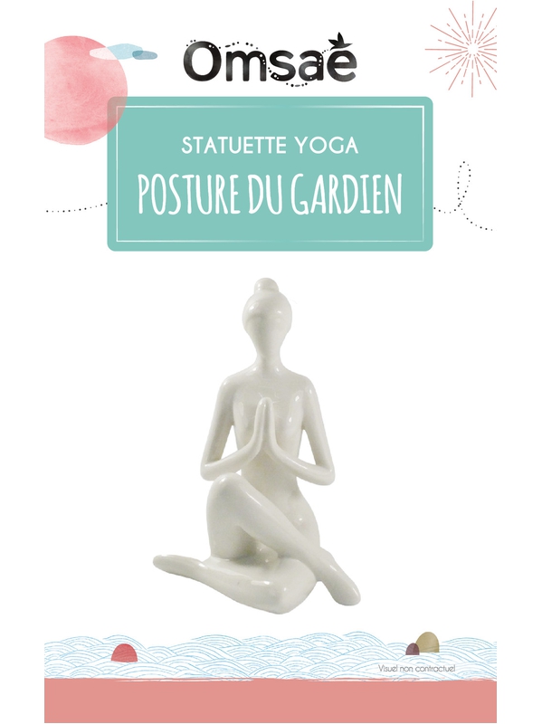 Statuette yoga posture du gardien en porcelaine. Dimensions : 12,5 x 10,5 x 16,8 cm. Utilisation en intérieur uniquement.
