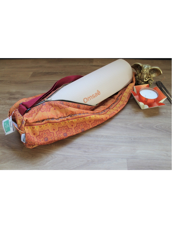 Sac de yoga au motif ayurvéda, idéal pour emporter partout avec soi son tapis et tous ses accessoires de yoga. Un sac en tissu souple 100 % coton qui viendra s'adapter parfa