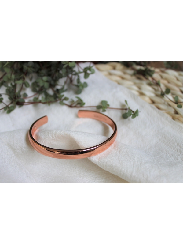 Bracelet ajustable composé de cuivre. Sa forme de jonc arrondi permet de s'adapter à tous les poignets et de bénéficier des bienfaits du cuivre au