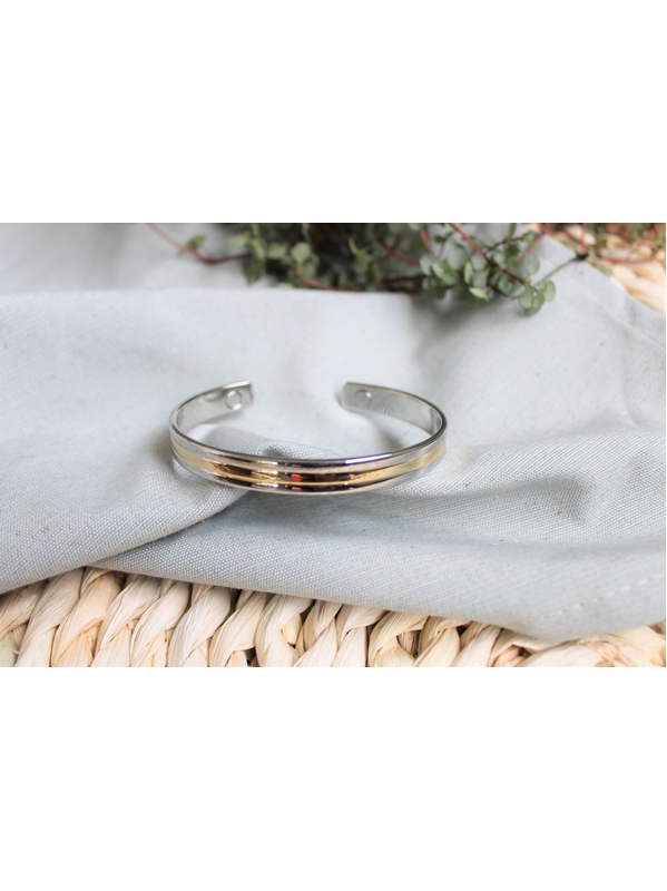Bracelet cuivre avec Aimants Jonc plat 2 métaux