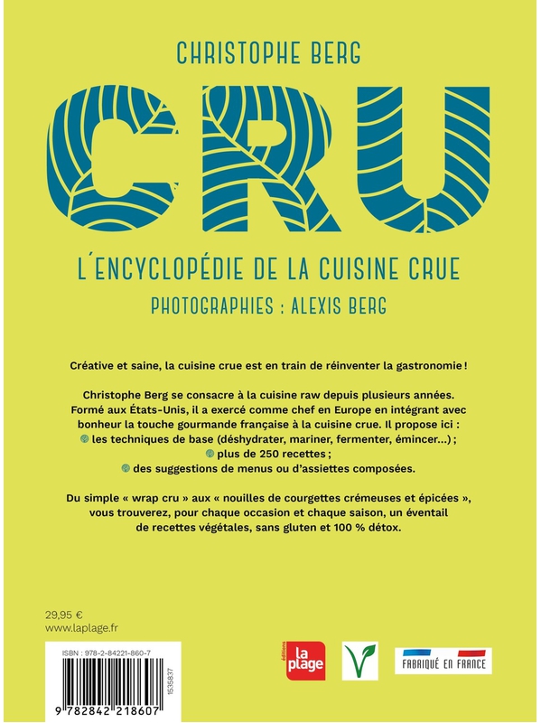 Créative et saine, la cuisine crue est en train de réinventer la gastronomie !Christophe Berg se consacre à la cuisine raw depuis plusieurs années. Formé aux États-Unis, il a exercé comme chef en Europe en intégrant avec bonheur la touche gourmande française à la cuisine crue. Il propose ici : les t Voir plus