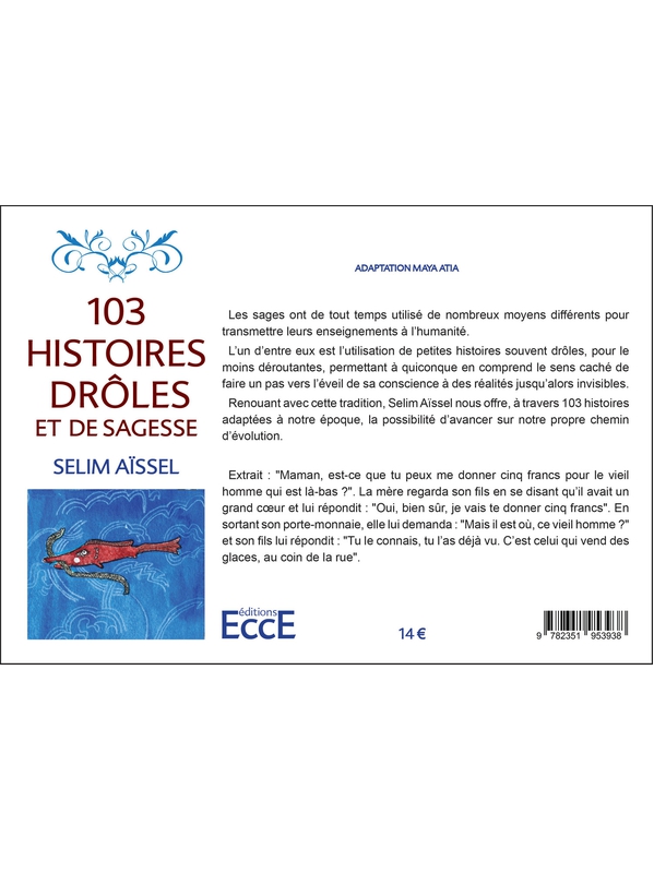 Les sages ont de tout temps utilisé de nombreux moyens différents pour transmettre leurs enseignements à l’humanité. L’un d’entre eux est l’utilisation de petites histoires souvent drôles, pour le moins déroutantes, permettant à quiconque en comprend le sens caché de faire un pas vers l’éveil de sa conscience à des réalités jusqu’alors invisibles. Renouant avec cette tradition, Selim Aïssel nous offre, à travers 103 histoires adaptées à notre époque, la possibilité d’avancer sur notre propre chemin d’évolution. Extrait : « Maman, est-ce que tu peux me donner cinq francs pour le vieil homme qui est là-bas ? » La mère regarda son fils en se disant qu’il avait un grand cœur et lui répondit : « Oui, bien sûr, je vais te donner cinq francs. » En sortant son porte-monnaie, elle lui demanda : « Mais il est où, ce vieil homme ? » et son fils lui répondit : « Tu le connais, tu l’as déjà vu. C’est celui qui vend des glaces, au coin de la rue. »Aïssel Selim Voir moins