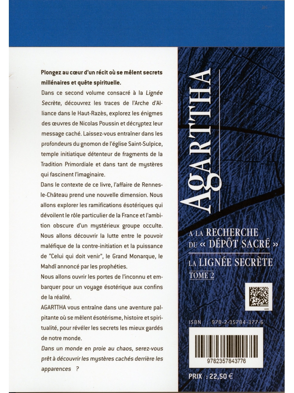 Plongez au cœur d'un récit se mêlent secrets millénaires et quête spirituelle. Dans ce deuxième volume de « La Lignée Secrète », découvrez les traces de l'Arche d'Alliance dans le Haut-Razès, explorez les énigmes des œuvres de Nicolas Poussin et décryptez leur message caché. Laissez-vous entraîner dans les profondeurs du gnomon de l'église Saint-Sulpice, temple initiatique détenteur de fragments de la Tradition Primordiale, etc. Dans le contexte de ce livre, l'affaire de Rennes-le-Château prend une nouvelle dimension. Explorez les ramifications ésotériques qui dévoilent le rôle particulier de la France et l'ambition obscure d'un mystérieux groupe occulte. Découvrez la lutte entre le pouvoir maléfique de la contre-initiation et la puissance de “Celui qui doit venir”, le Grand Monarque, le Mahdî annoncé par les prophéties. Dans un monde en proie au chaos, serez-vous prêt à découvrir les mystères cachés derrière les apparences ? Ouvrez les portes de l'inconnu et embarquez pour un voyage ésotérique aux confins de la réalité. AGARTTHA vous entraîne dans une aventure palpitante où se mêlent ésotérisme, histoire et spiritualité, pour révéler les secrets les mieux gardés de notre monde.Robin Daniel Voir moins