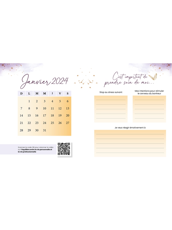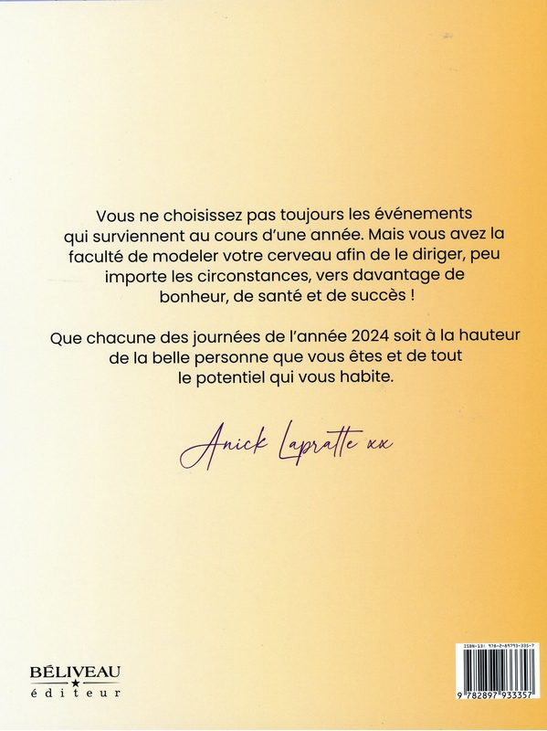 Vous ne choisissez pas toujours les événements qui surviennent au cours d’une année. Mais vous avez la faculté de modeler votre cerveau afin de le diriger, peu importe les circonstances, vers davantage de bonheur, de santé et de succès ! Que chacune des journées de l’année 2024 soit à la hauteur de Voir plus