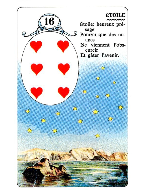 Jeu parmi les plus simples d'utilisation et pourtant si fort dans ses prédictions. Ce jeu de 36 cartes, né des secrets de Mlle Lenormand, est un guide parfait pour vos consultations divinatoires. En complément d'un oracle ou d'un tarot, il apporte des éléments de précision.