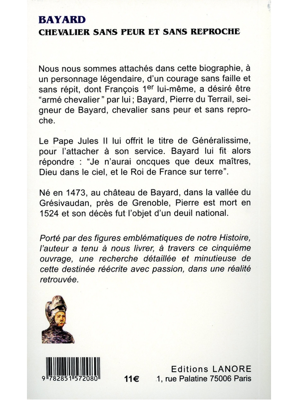 Figure ignorée, voire méconnue, Pierre du Terrail, seigneur de Bayard, 1473 - 1524, représente pourtant avec éclat l’homme d’armes du début de la Renaissance. Ce récit biographique, telle une chanson de geste, retrace les exploits militaires de celui qu’on surnommait « le Chevalier sans peur et sans Voir plus