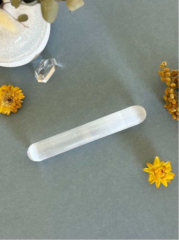 Élevez votre pratique spirituelle avec ce bâton en sélénite, un outil à la fois élégant et apaisant. Réputée pour ses propriétés purifiantes, la sélénite nettoie les énergies négative Voir plus