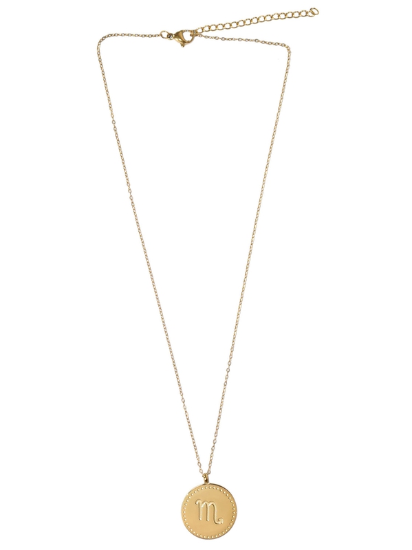 Collier composé d'une médaille gravée et d'une chaîne en acier inoxydable. Médaille gravée au recto et au verso avec le signe et la constellation Scorpion. Chaîne ajustable d'une longueur de 40-45 cm.