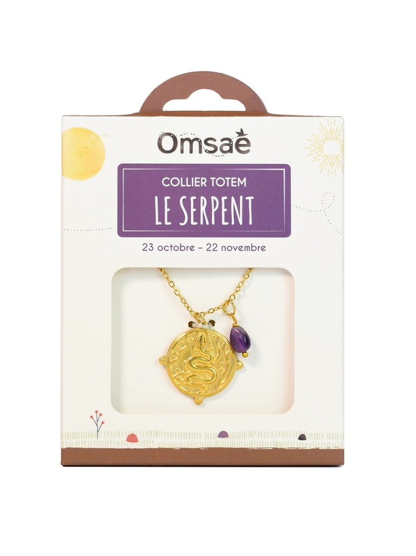 Ce collier, inspiré de l'astrologie chamanique amérindienne, incarne l'esprit du Serpent, l'animal totem qui vous représente si vous êtes né entre le 23 octobre et le 22 novembre. Symbole de transformation et de renouveau, le Serpent vous aidera à accueillir le changement pour vous permettre de vous réaliser pleinement. Pierre d'apaisement, l'améthyste dissipera vos peurs et vous apportera de la sérénité. Portez ce collier pour bénéficier de l'énergie transformatrice et libératrice du Serpent et renforcer votre capacité à évoluer.