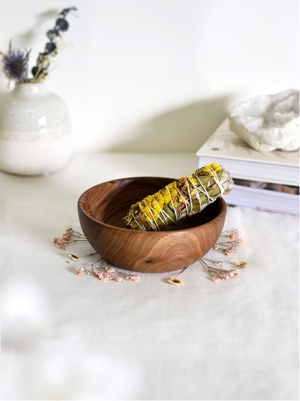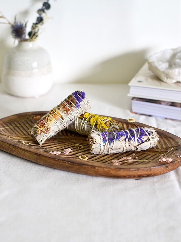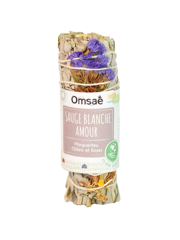 Ces bâtons de sauge, délicatement associés à des fleurs magiques, vous aident à concrétiser vos intentions. Le bâton Sauge Méditation, composé de sauge blanche et de marguerites violettes, crée une atmosphère propice à l'introspection, infusant votre espace d'une énergie apaisante qui invite à la tranquillité et à la concentration spirituelle. Le bâton Sauge Joie de vivre, mélange sauge blanche, pétales de marguerites et feuilles de Morton et célèbre la joie de vivre en diffusant une énergie positive et légère, idéale pour favoriser le bonheur. Enfin, le bâton Sauge Amour, composé de sauge blanche, de marguerites, d'œillets et de roses, symbolise l'amour et l'harmonie, apportant une énergie douce qui favorise l'amour de soi et l'équilibre émotionnel.
