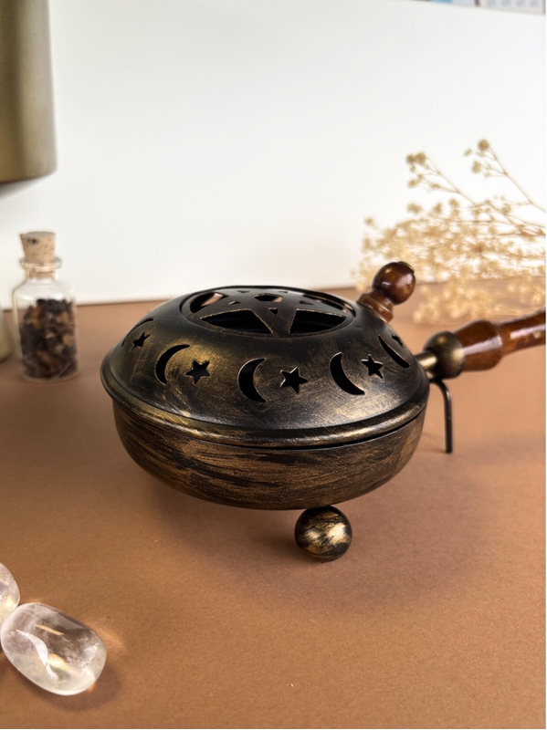 Ce brûle-encens est idéal pour brûler les encens en grains ou les résines. Décoré d’un pentagramme, symbole de protection et d’équilibre des forces, il canalise les énergies positives pour créer un environnement propice à la sérénité et à la spiritualité.