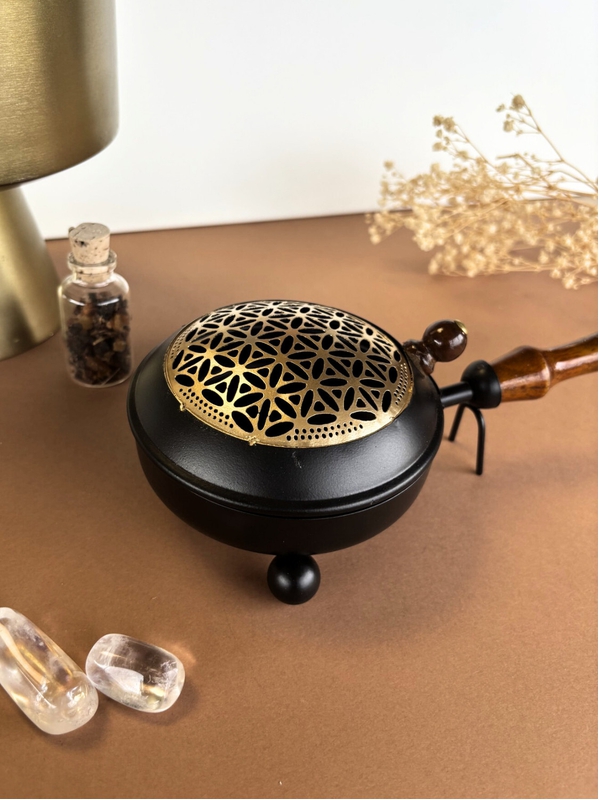 Ce brûle-encens est idéal pour brûler les encens en grains ou les résines. Décoré d’une fleur de vie, symbole sacré représentant l’harmonie et souvent associée à l’ Voir plus