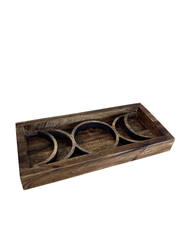 Élevez votre pratique du tarot avec ce support en bois 2 en 1 décoré du symbole de la Triple Lune. Il est conçu à la fois pour accueillir et exposer vos cartes de tarot lors de vos tirages mais aussi comme un support de rangement élégant pour vos pierres, bijoux ou autres accessoires de rituels. La Triple Lune incarne le cycle de la vie, de la féminité et de la puissance lunaire, symbolisant le changement, la croissance et le renouveau. Ce support est idéal pour vos séances de divination, vos rituels magiques ou tout simplement pour mettre en valeur vos cartes du moment.
