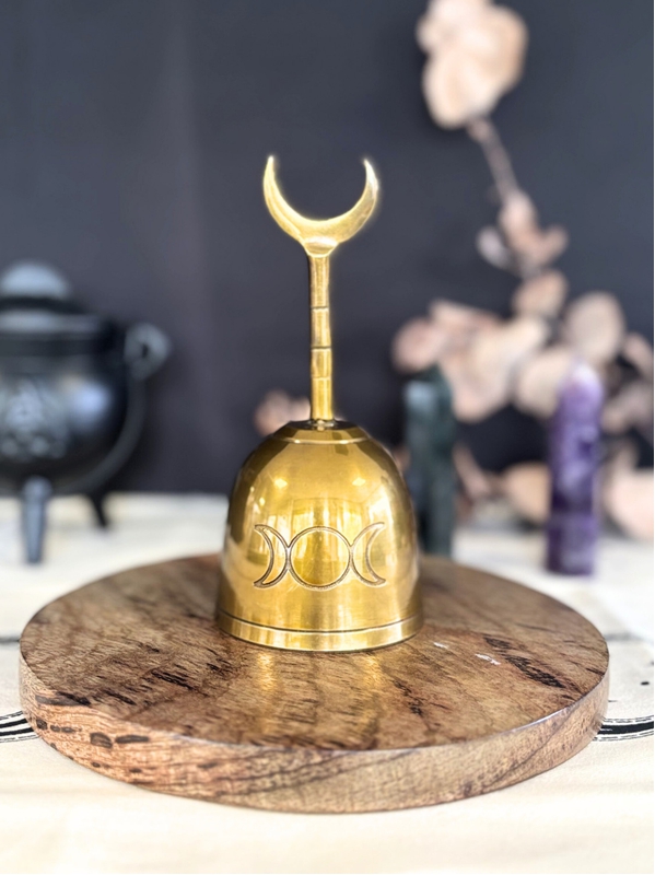 Élevez votre espace avec cette cloche en laiton ornée du motif inspirant de la Triple Lune. Ce symbole incarne le cycle de la vie, de la féminité et de la puissance lunaire, symbolisant le changement, la croissance et le renouveau. Idéale pour marquer le début et la fin de vos rituels grâce à son doux tintement, elle purifie l’espace et invite les énergies spirituelles. Cette cloche est parfaite pour enrichir votre collection d’outils à rituels et apporter une touche de magie à vos cérémonies.