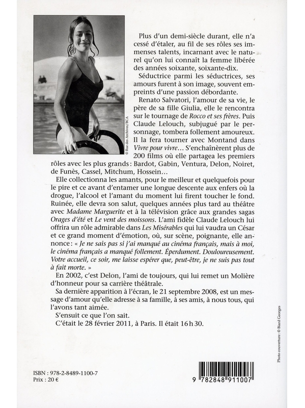 Plus d'un demi-siècle durant, elle n'a cessé d'étaler, au fil de ses rôles ses immenses talents, incarnant avec le naturel qu'on lui connaît la femme libérée des années soixante, soixante-dix. Séductrice parmi les séductrices, ses amours furent à son image, souvent empreints d'une passion débordante. Renato Salvatori, l'amour de sa vie, le père de sa fille Giulia, elle le rencontra sur le tournage de Rocco et ses frères. Puis Claude Lelouch, subjugué par le personnage, tombera follement amoureux. Il la fera tourner avec Montand dans Vivre pour vivre... S'enchaînèrent plus de 200 films où elle partagea les premiers rôles avec les plus grands: Bardot, Gabin, Ventura, Delon, Noiret, de Funès, Cassel, Mitchum, Hossein... Elle collectionna les amants, pour le meilleur et quelquefois pour le pire et ce avant d'entamer une longue descente aux enfers où la drogue, l'alcool et l'amant du moment lui firent toucher le fond. Ruinée, elle devra son salut, quelques années plus tard au théâtre avec Madame Marguerite et à la télévision grâce aux grandes sagas Orages d'été et Le vent des moissons. L'ami fidèle Claude Lelouch lui offrira un rôle admirable dans Les Misérables qui lui vaudra un César et ce grand moment d'émotion, où, sur scène, poignante, elle annonce: Je ne sais pas si j'ai manqué au cinéma français, mais à moi, le cinéma français a manqué follement. Eperdument. Douloureusement. Votre accueil, ce soir, me laisse espérer que, peut-être, je ne suis pas tout à fait morte. En 2002, c'est Delon, l'ami de toujours, qui lui remet un Molière d'honneur pour sa carrière théâtrale. Sa dernière apparition à l'écran, le 21 septembre 2008, est un message d'amour qu'elle adresse à sa famille, à ses amis, à nous tous, qui l'avons tant aimée. S'ensuit ce que l'on sait. C'était le 28 février 2011, à Paris. Il était 16h30.Roudder Orlando Voir moins