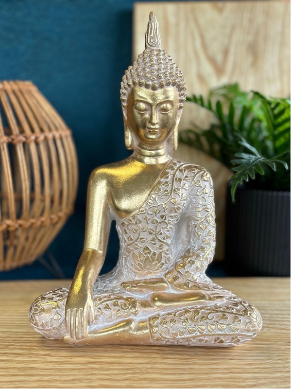 Statuette Bouddha Assis 24 cm en Résine - Doré