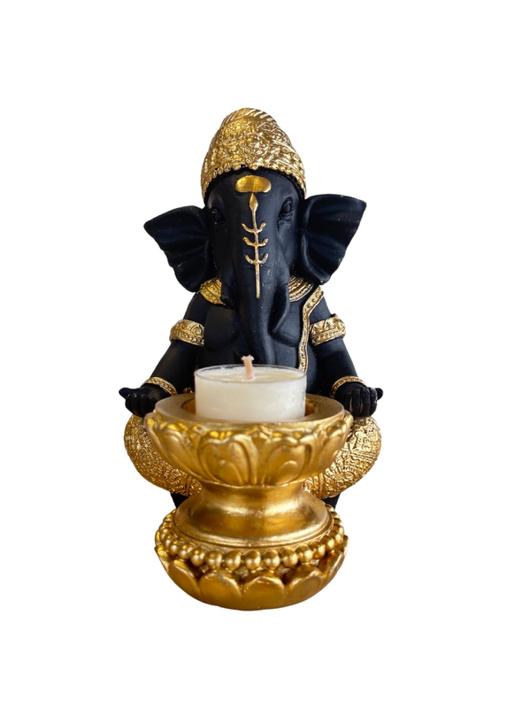 Porte-bougie Ganesh 17,5 cm - Résine - Doré