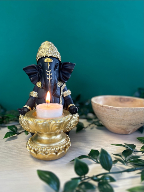Porte-bougie Ganesh 17,5 cm en Résine - Doré