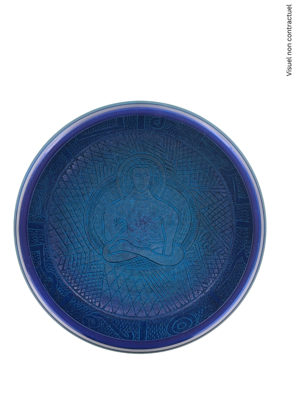 Laissez-vous porter par les vibrations apaisantes de ce bol chantant tibétain en aluminium, d'un bleu profond rehaussé du symbole sacré Om. D'un diamètre d'env Voir plus