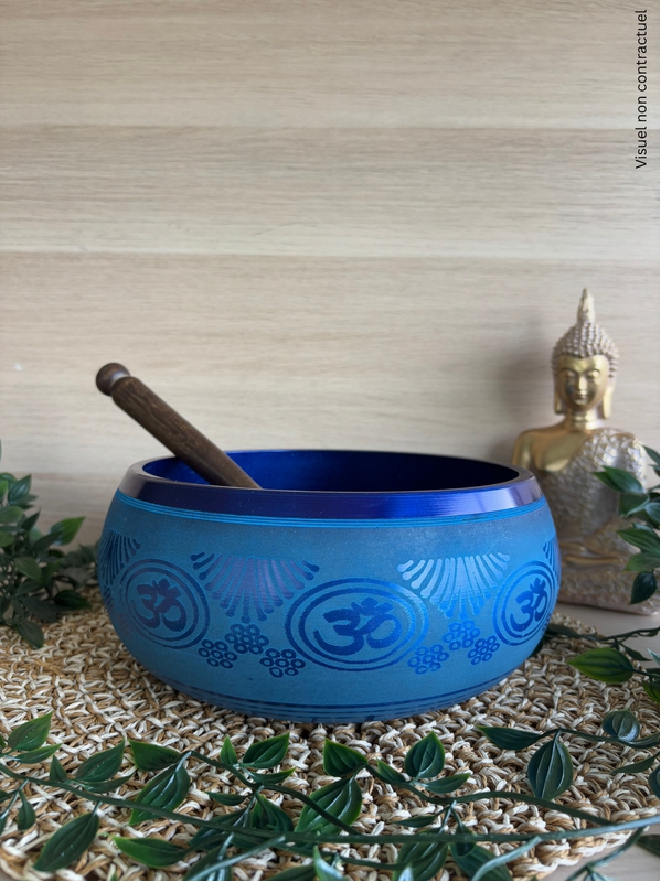 Bol Chantant Tibétain Aluminium Bleu Om env 20 cm