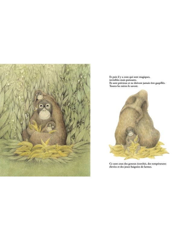 Un ouvrage très poétique qui parle d’un élément qui n’est mystérieusement pas nommé, seulement décrit. Et cet élément peut être tellement différent au grès des gens, des situations, des moments, qu’il peut prendre un nombre de formes infini. Quelques indices ? Il peut être échangé lors de moments heureux ou au contraire un peu tristes. Il est là pour encourager, consoler, ou partager une tendresse. Il peut être filial ou amoureux. De quoi s’agit-il ? Du baiser bien sûr ! Il y en a cependant un qui compte plus que tous les autres…Lorenzoni Chiara,Vignaga Francesca Dafne Voir moins