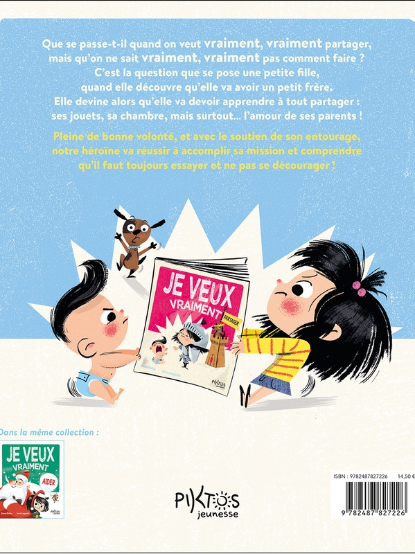 Que se passe-t-il quand on veut vraiment, vraiment partager, mais qu’on ne sait vraiment, vraiment pas comment faire ? C’est la question que se pose une petite fille, quand elle découvre qu’elle va avoir un petit frère. Elle devine alors qu’elle va devoir apprendre à tout partager : ses jouets, sa c Voir plus