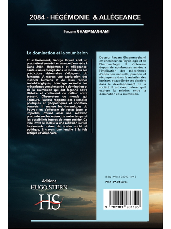 Et si finalement George Orwell était un prophète et son récit en avance d’un siècle ? Dans 2084, Hégémonie et Allégeance, l’auteur nous plonge dans un monde où ces prédictions visionnaires s’éloignent du fantasme. À travers une exploration des instincts humains et de leurs racines sociobiologiques, l'ouvrage examine les mécanismes complexes de la domination et de la soumission qui ont façonné notre Histoire et continuent de définir notre présent. Observateur du monde qui l’entoure, l'auteur rapporte des exemples politiques et géopolitiques et sociétaux concrets. Il analyse les dynamiques du Pouvoir en s’efforçant de rester juste et impartial, offrant ainsi une réflexion profonde sur les enjeux de notre temps et les possibilités futures de notre société. Ce livre invite le lecteur à une réflexion sur les fondements même de l'ordre social et politique, à travers une lentille à la fois critique et visionnaire.Ghaemmaghami Farzam Voir moins