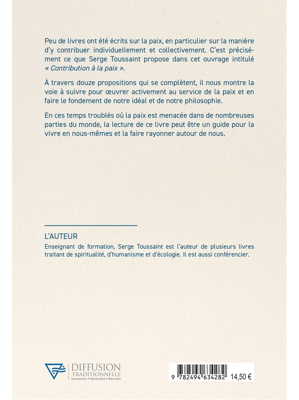 Est-il possible de contribuer activement à la paix ? Et comment œuvrer pour favoriser son avènement ? Ces deux questions, nous sommes nombreux à les soulever et à nous demander comment agir dans le monde actuel, si tourmenté et violent. Pour Serge Toussaint, la paix n’est pas une utopie impossible à Voir plus