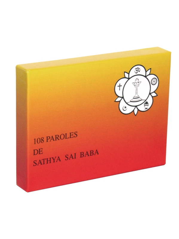 Ce jeu de 108 paroles extraites des enseignements de Sathya Sai Baba a été réalisé dans le but de servir de support de réflexion ou de méditation. On en tirera une carte, quotidiennement, ou dans les moments d'interrogation, de tâtonnement, de doute. Chacun sera alors surpris de découvrir une senten Voir plus