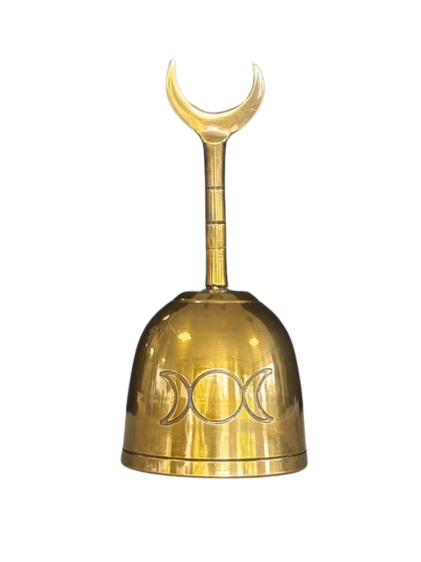 Élevez votre espace avec cette cloche en laiton ornée du motif inspirant de la Triple Lune. Ce symbole incarne le cycle de la vie, de la féminité et de la puissance lunaire, symbol