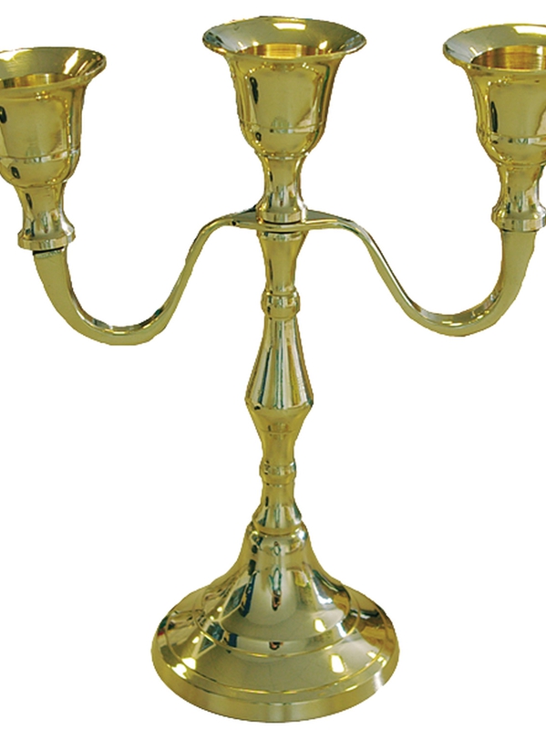 Chandelier 3 branches en laiton sur pied et finition doré brillant.
